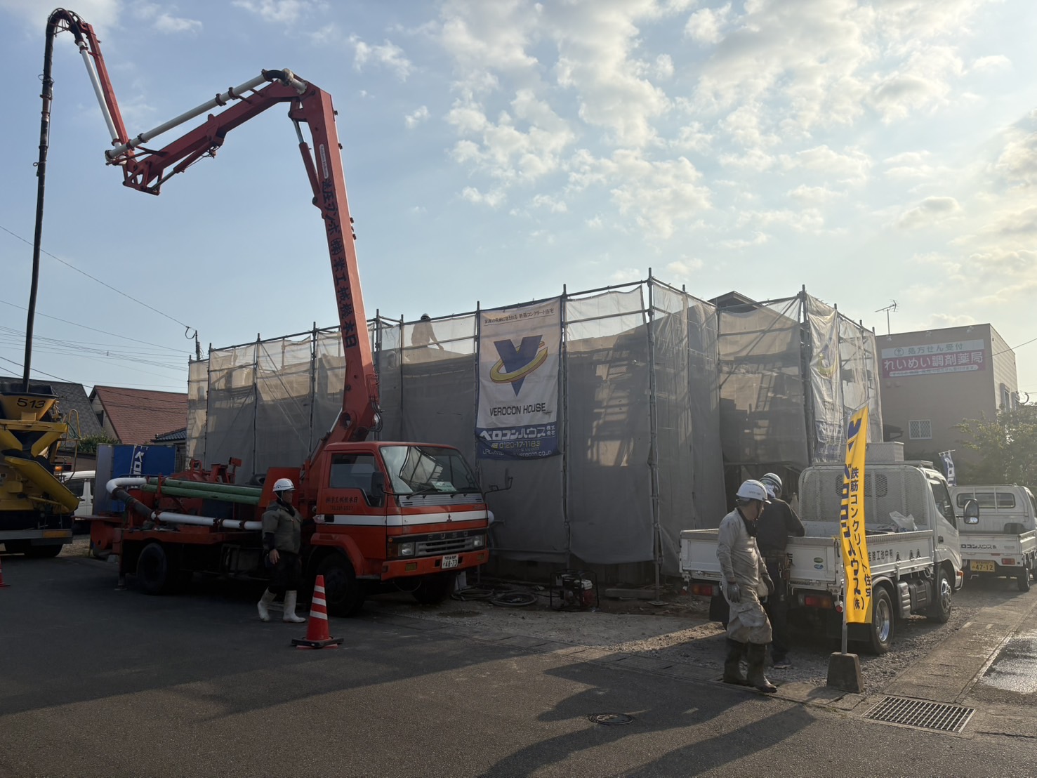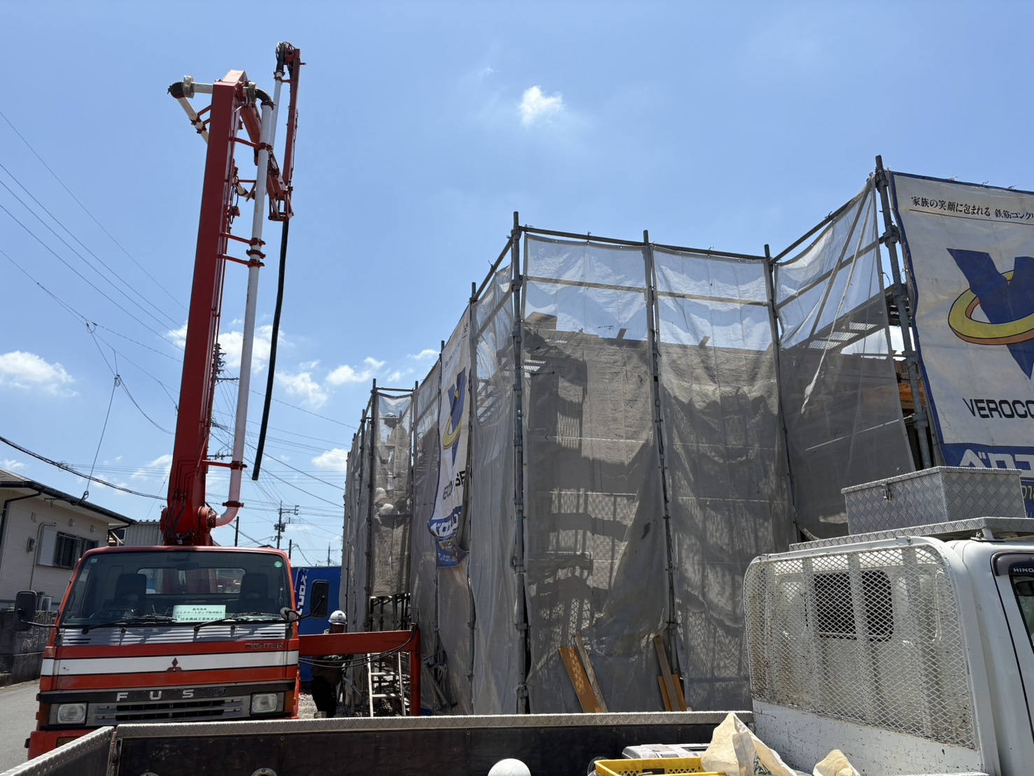 とてもいい天気の中、コンクリート打設が始まりました!